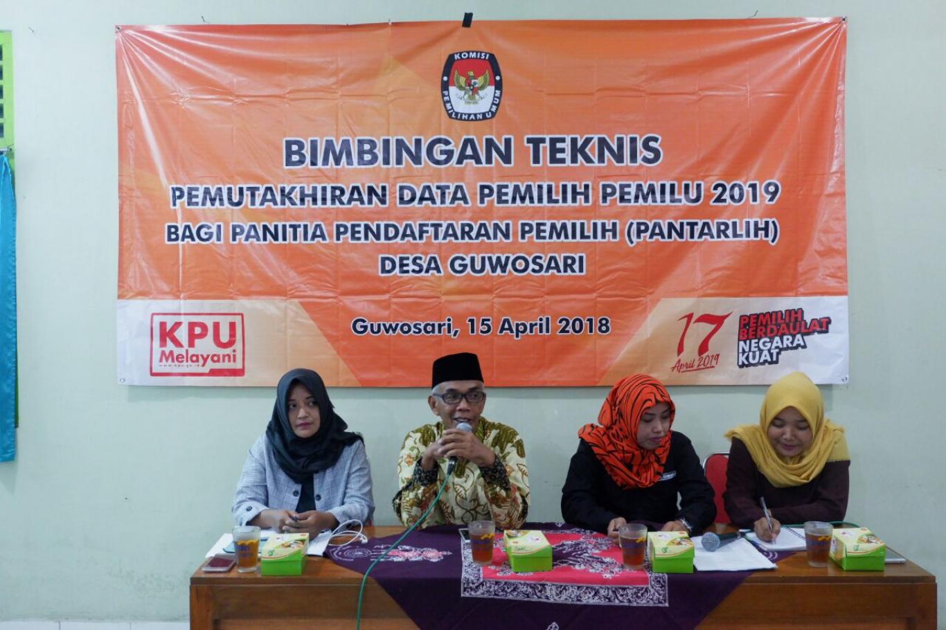Panitia Pemungutan Suara (PPS) melaksanakan bimtek untuk Pantarlih (Petugas pemutakhiran data pemilih) Desa Guwosari pada hari Minggu, 15 April 2018 pukul 19.30 wib bertempat di Aulal Balai Desa Guwosari (red). Bimtek yang diikuti 44 pantarlih se Desa Guwosari, dan dihadiri oleh Lurah Desa Guwosari, PPK Pajangan dan PPL Desa Guwosari.